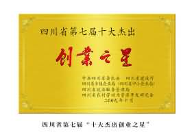 2009年獲得四川省第七屆十大杰出創業之星獎